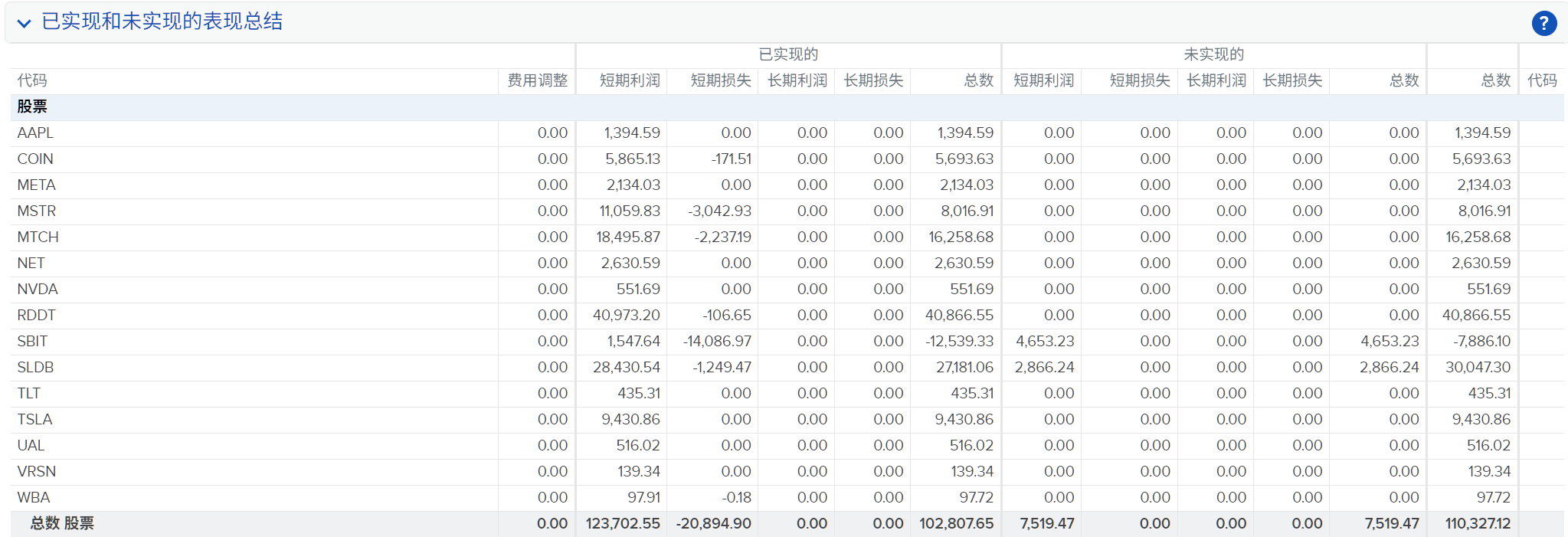 5个月的交易中,唯一一个当下仍有未平仓头寸的SBIT浮亏